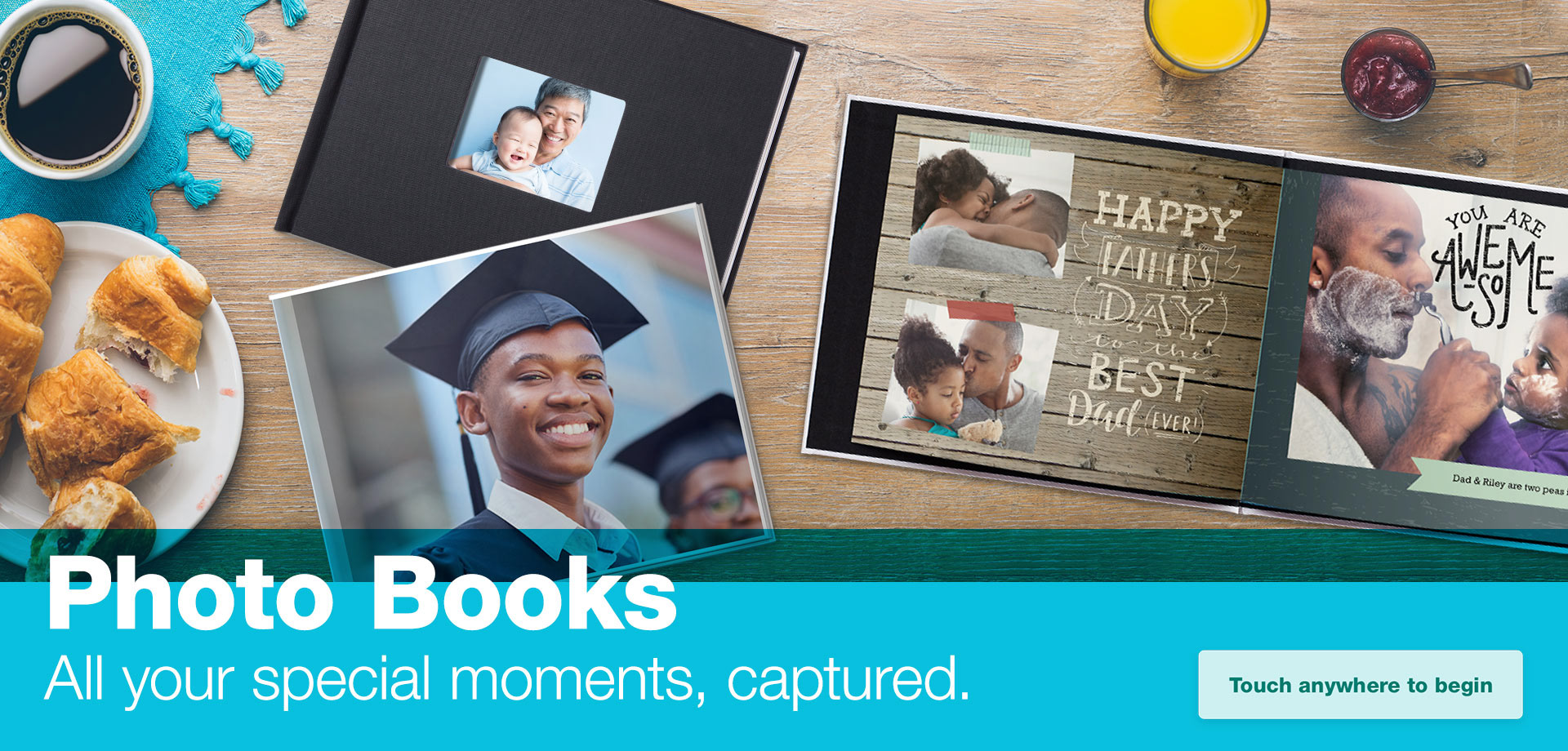 A selection of screensaver slides for in-store Photo kiosks. Each image was composited in Photoshop using existing product photography and stock images.